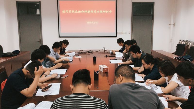6月24日,材料化学系全体教师在工科E510召开了教师思想政治和师德师风建设专题学习与研讨会,会议由支部书记孙海翔老师主持,全体教师参加会议。