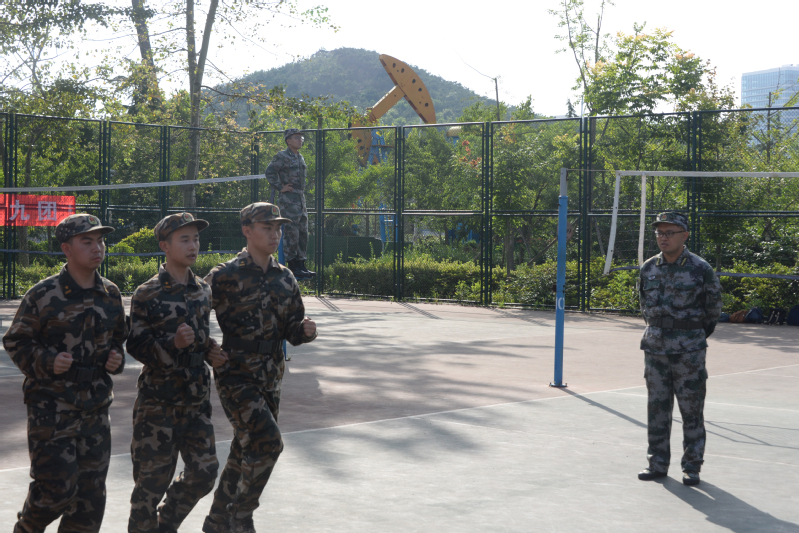 今年是学校调整军训时间后的第一次军训,也是学校军训历史上第一次没有承训部队教官帮训的一次军训。为了充分做好学生军训工作,学院党委副书记孙启龙担任军训团团长兼政委,学院团委书记王佳担任军训团政治部主任,学院青年教师张腾、刘思远以及辅导员齐天一担任军训连指导员,退伍大学生士兵于夕航、王金磊以及在校生侯传志担任军训连连长,另有学生排长两名。