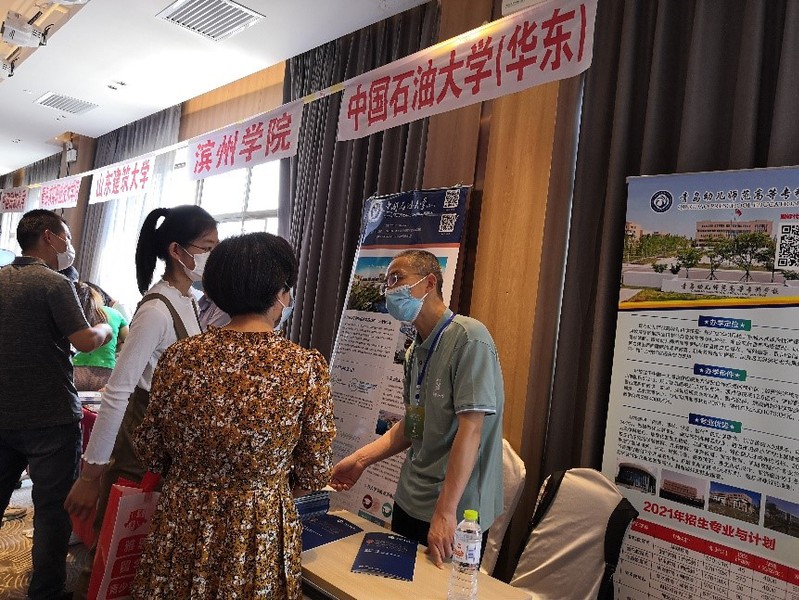 2021年6月25日至29日,学院教师付殿岭至威海新闻大厦(齐鲁电视台主办)、威海万达广场(齐鲁晚报主办)、威海市第一中学(威海一中主办)参加高考招生咨询会,进行我校的2021招生咨询及宣传工作。在咨询及宣传会前积极筹划,提前邮寄招生宣传材料,做好准备。在高招咨询会上,付殿岭老师对我校的历史沿革、基本情况、办学条件、师资、专业设置、学生培养、历年学生录取分数、学生就业等信息对咨询家长和考生进行了详细的介绍,并对家长和学生密切关心的录取具体专业等给出参考意见。