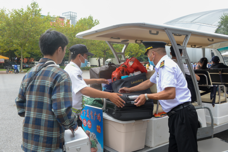 摆渡车为新生搬运行李