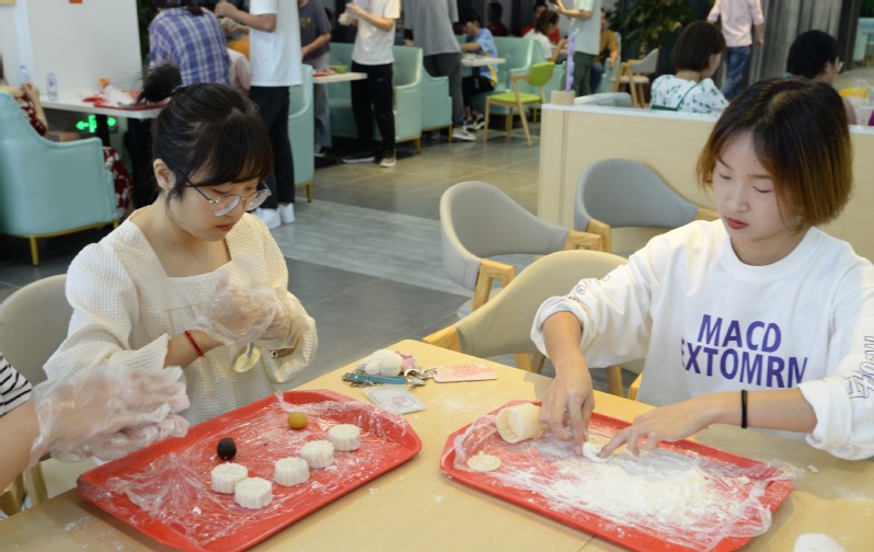学院研究生会联系古镇口校区观海苑餐厅组织在校研究生制作月饼,同学们亲自动手制作冰皮月饼,制作完成后由餐厅加工,同学们动手参与,拉开了联欢会的序幕。随后的才艺表演为同学们提供了展示风采和发挥特长的平台,《后来》、《等你下课》、《暖暖》等一首首耳熟能详的歌曲,乐器演奏、舞蹈、串烧、脱口秀等各种形式的才艺表演点燃了联欢会高潮,受到同学们的一致好评。整场联欢会持续了近两个小时,歌声、乐声、欢笑声充斥着整个古镇口校区校园,为节日增添了别具一格的祥和气氛。
