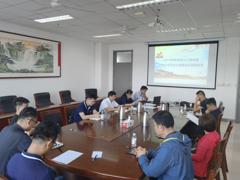 2021年9月29日,材料化学系党支部召开了党员大会,进行党支部委员会换届选举工作并开展9月份组织生活。会议由党支部书记孙海翔同志主持,学院党委书记门小刚同志及材料化学系全体党员参加了会议。