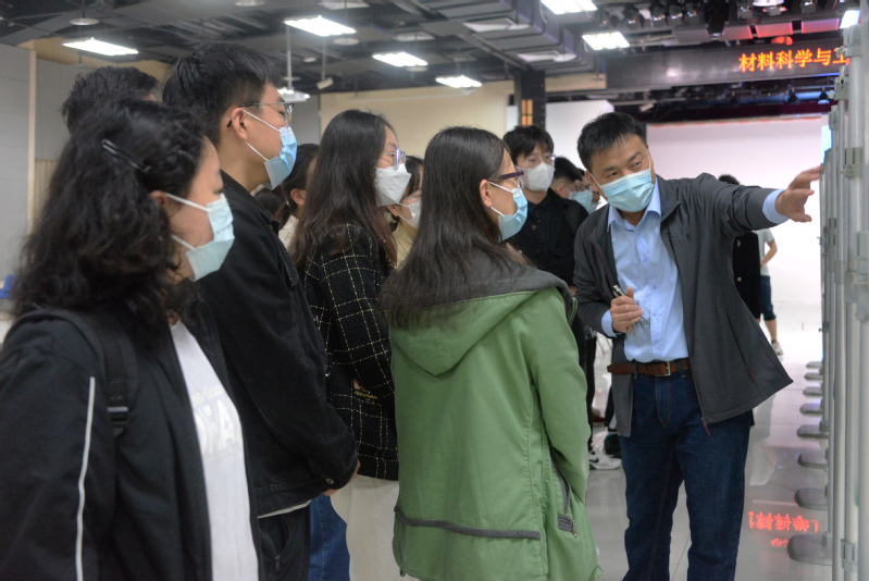 活动过程中,参与同学依次参观各科研团队展板,听取教师们对所属的科研团队的详细介绍,并积极与导师们进行现场沟通交流。材料科学与工程专业2018级本科生杨昊炎表示:“这一次的校园开放日活动以‘摆摊’的形式展开,不仅可以更加直观地了解学院各个科研团队的具体概况,还能与研究生导师零距离沟通,相比于平时线上的研讨活动,能够更加直接地了解自身想要的信息,加强了师生之间的沟通,也让大家对自己的学术生涯有了更明晰的规划。”