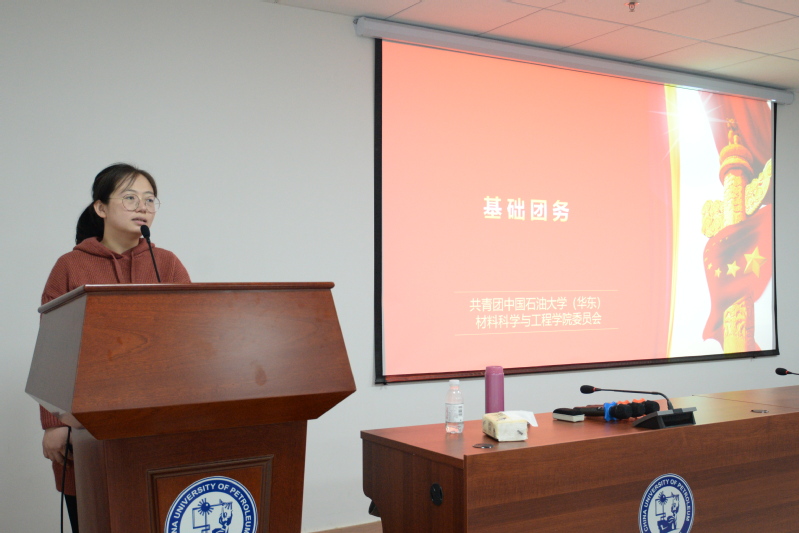 王佳为团员青年们介绍了基础团务知识,从共青团的基层组织、共青团的基层组织生活制度、共青团的历史和我校及我院的共青团工作四个方面展开,普及了“三会两制一课”制度,讲述了了高校团支部的构成及职能等基础团务知识,展示了我院举办的优秀团日活动。王佳激励各位团员青年:“努力创造社会价值、扛下压力、创造希望,为建设更美好的中国不懈奋斗!”