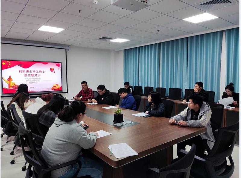 11月26日,材料博士生学生党支部在古镇口校区新能源大厦252会议室组织集体学习党的十九届六中全会精神,集体学习《中共中央关于党的百年奋斗重大成就和历史经验的决议》(以下简称《决议》),同时积极交流了学习心得与体会。