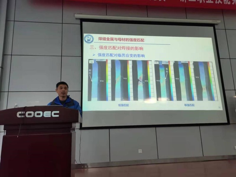 近日,材料科学与加工系党支部与海洋石油工程(青岛)有限公司建造部工程质量管理中心党总支联合开展主题讲座活动,海洋石油工程(青岛)有限公司建造部工程质量管理中心党总支书记程晋宜同志在南教317为我校材控18级本科生作《AWS标准在海洋钢结构建造中的应用》主题报告,同时材料科学与加工系党支部韩涛副教授为海洋石油工程(青岛)有限公司焊接工程师、焊接技师培训班作《焊缝金属与母材的强度匹配》主题报告。