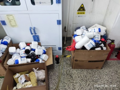 5 | 工科楼E0361-E0363 | 1.大量危废未处置,危废区缺少标识。 | |||