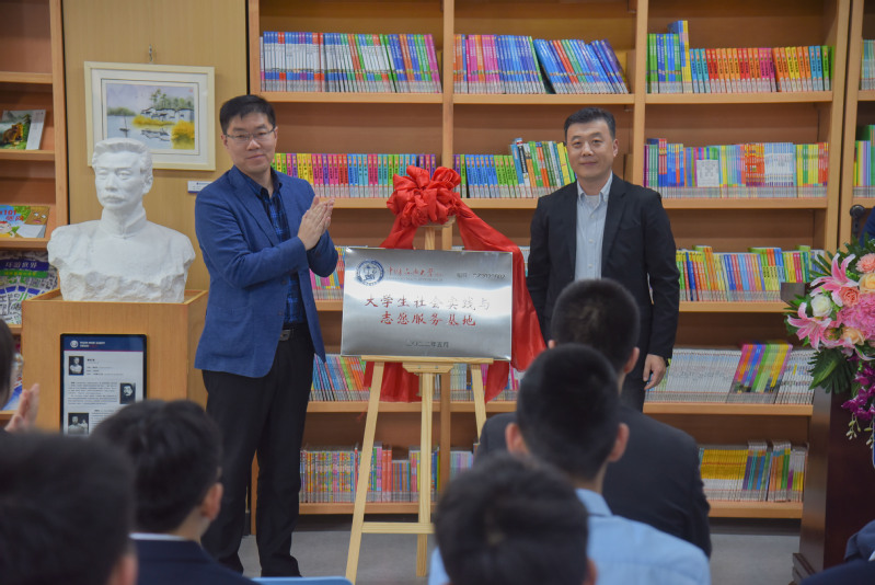 学院党委副书记孙启龙与青岛古镇口海军中学副校长王建成共同为社会实践与志愿服务基地揭牌 迟明烁摄