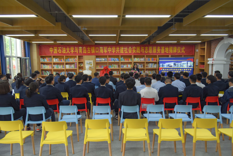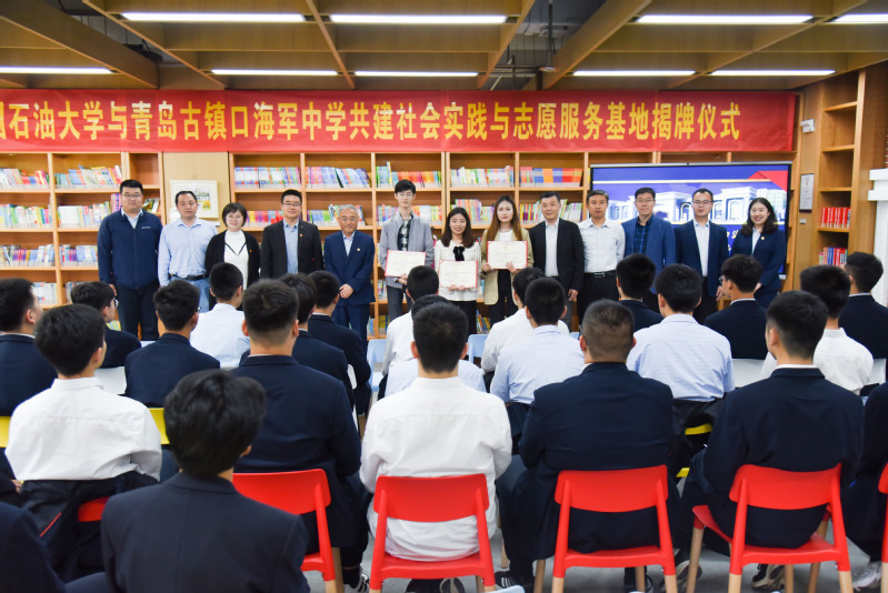 为积极贯彻落实学校“融入青岛、服务青岛”发展理念,切实加强大学生社会实践与志愿服务工作,5月20日下午,tyc41183太阳成集团与青岛古镇口海军中学举行共建社会实践与志愿服务基地揭牌仪式。青岛古镇口海军中学党委书记黄毅、副校长王建成、办公室主任冯使鑫,中国石油大学古镇口校区建设管理委员会综合办公室副主任蔡吉刚、校团委副书记姜士绅、tyc41183太阳成集团党委副书记孙启龙、tyc41183太阳成集团团委书记王佳以及志愿服务学生代表出席本次揭牌仪式。仪式由青岛古镇口海军中学团委书记赵林涛主持。