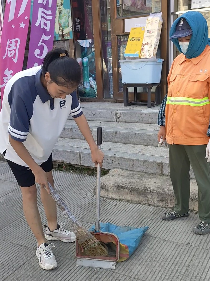 为调研乡村垃圾情况,实践队员们来到了深井子村,围绕每日垃圾数量、垃圾分类情况、垃圾处理情况等方面进行实地调研。实践队员们通过采访当地环卫工人得知,他们每日工作任务繁重,需要将每日垃圾送到垃圾处理点,最终由垃圾车集中送走。实践队员们观察到环卫工人的皮肤已经被太阳晒得通红,为此实践队员主动体验清扫垃圾,实践队员切身体验到环卫工人的辛苦并为其送去关切与问候。最后,实践队员们向当地居民们讲述垃圾回收的意义,讲解了垃圾分类的重要性,提醒人们根据垃圾箱外的标注提示进行分类。实践队员还将继续通过线上宣讲的形式和设计宣传广告等方式进一步加强人们对垃圾分类的意识,共同守护我们的大家庭。