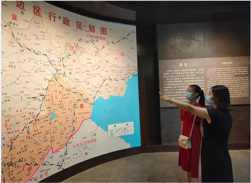 讲解员为实践队员讲解晋察冀边区行政区划图 王琛璐摄