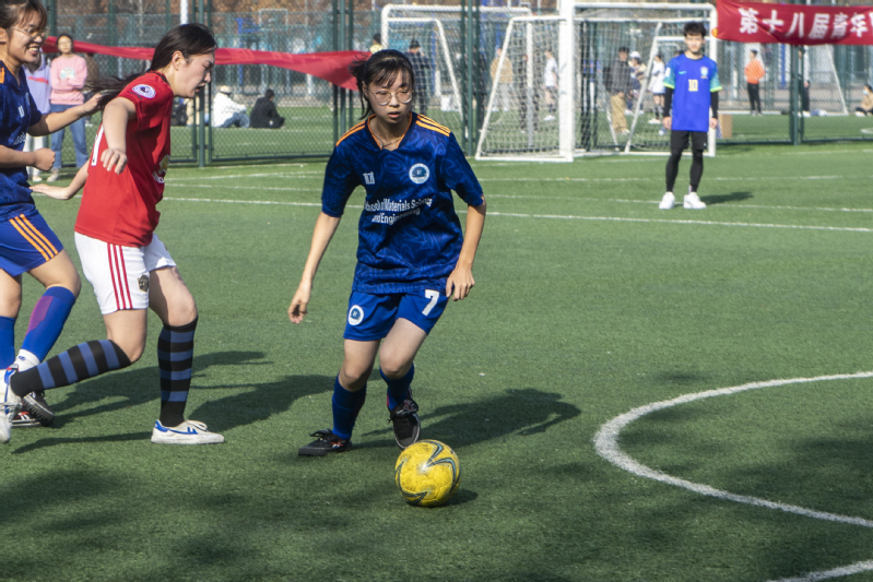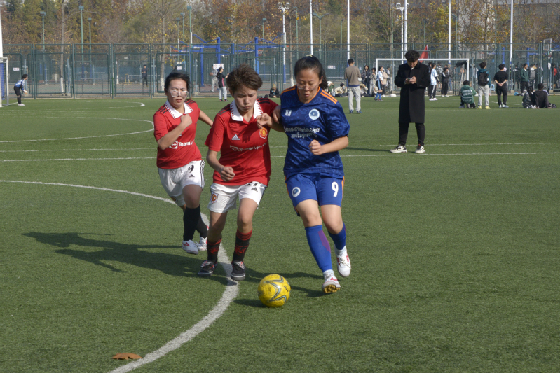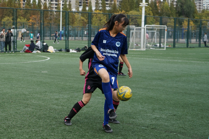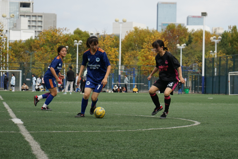 决赛中,对阵上届冠军队伍文法女足,我院女足姑娘们准备充分,赛前做好战略部署。上半场,球队制造多次威胁进攻,王涓洁为球队取得首分;下半场,栾欣铭在队友助攻下再入一球。虽对方凭借灵活跑位扳回一球,但我院女足姑娘们以针对性的防守限制住对方的进攻,拼体力、拼韧劲,最终将2:1的比分保持到最后一刻,球队创造队史最好成绩,斩获冠军。