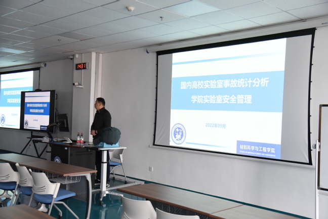 会上,周欣明首先播放了生产线火灾案例“一起死亡19人的火灾是如何发生的”,通过视频中的误操作使火灾蔓延来强调正确处理安全问题的重要性。之后,周欣明对国内高校实验室事故进行统计分析,结合事故案例强调实验室安全的重要性,分析实验室存在的安全隐患,指出实验室存在的火灾爆炸、中毒窒息、触电事故、高温灼烫等典型风险。最后,周欣明讲解了学校实验室安全管理相关办法,科普必知的实验室安全常识,引导学生进一步增强安全防范意识。之后,张琰对学校古镇口校区概括、校区运营、后勤保障、运动场所及设施进行介绍,重点强调古镇口校区安全注意事项。