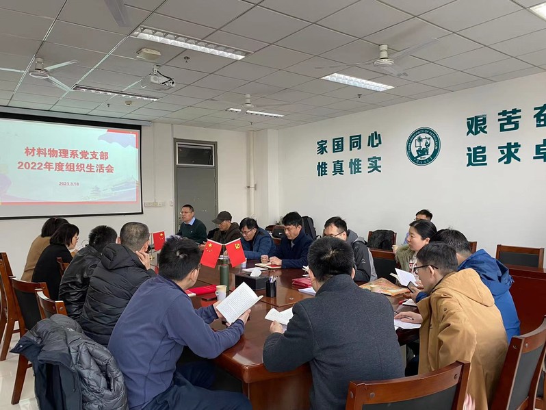 3月18日,材料物理系党支部在工科E510召开2022年度组织生活会和开展民主评议党员,会议由支部书记孙霜青主持,支部全体教师党员参会。