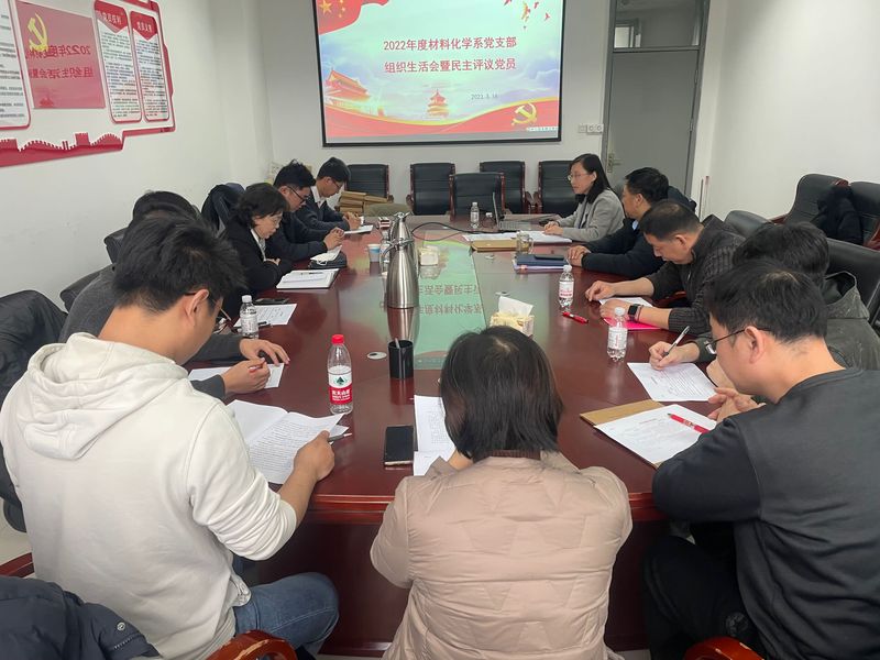 3月16日下午,材料化学系党支部在工科E514会议室召开2022年度组织生活会暨民主评议党员会议,会议由支部书记孙海翔主持,支部全体党员参加会议。学院党委书记门小刚同志亲临现场指导。
