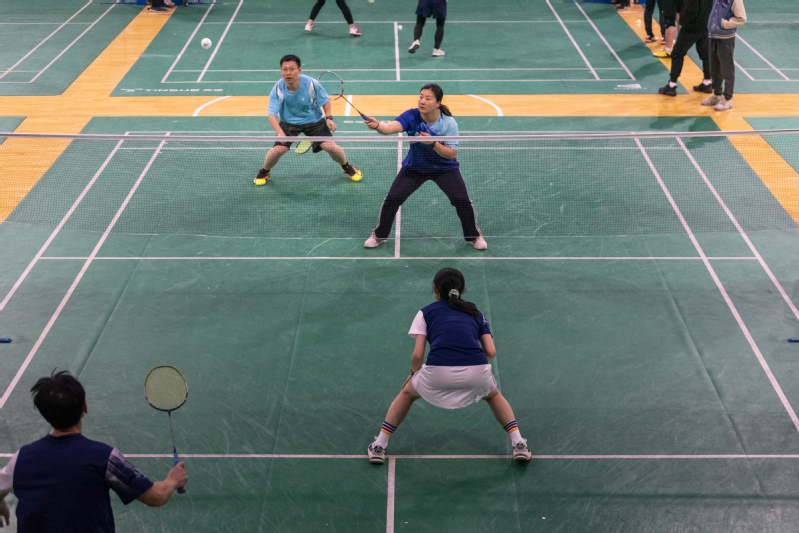 本次比赛采取“五羽轮比”混合团体追逐赛制,每队每场派7名运动员轮流上场进行双打比赛,其中至少包括一名正高(正教授)或二级干部和两名女运动员。比赛中,我院参赛队员团结配合,顽强拼搏,齐心协力,每球必争,赢球时相互赞许,输球时相互鼓励,打出了气势,打出了水平,赢得了对手的尊重,充分展现了tyc41183太阳成集团昂扬向上、追求卓越的精神风貌。