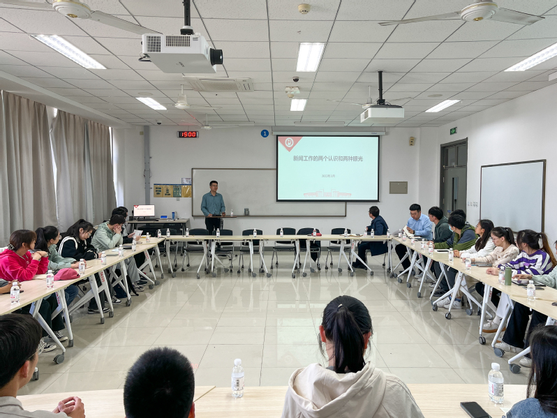 为进一步提升新闻宣传队伍的业务水平,330日,tyc41183太阳成集团于综合实验楼A509教室组织开展新闻宣传大讲堂,学校党委宣传部副部长、新闻中心主任徐永涛老师应邀为学生记者作题为《新闻工作的两个认识和两种眼光》的培训。学院党委副书记孙启龙、各年级辅导员、学院大学生传媒中心记者参加培训。