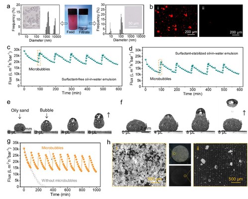 图2 气泡抗污提升膜油水分离性能