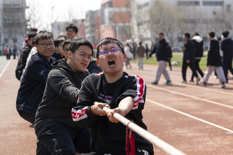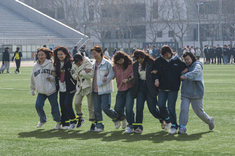 本次趣味运动会包括八人九组、坐地起身、班级拔河比赛等项目。首先进行的是八人九组比赛,每个班级派出两支队伍参赛,参赛队伍配合默契、你追我赶,体现出了努力拼搏、永不服输的奋斗精神。随后进行的是坐地起身,班级全体同学手挽手,班级对抗赛的形式考验了各班的团队与配合意识。最后进行的是班级拔河比赛,在响亮的号子声中,同学们大声地为自己的班级摇旗呐喊,参赛队员也拼尽全力,各班级展现出拼搏不屈和团结一致的精神。同学们在比赛中积极参与,配合默契,在运动场上挥洒汗水,释放青春的激情。赛后,全体学生集合在一起合影留念,用相机定格这美好的瞬间,留下难忘的回忆。