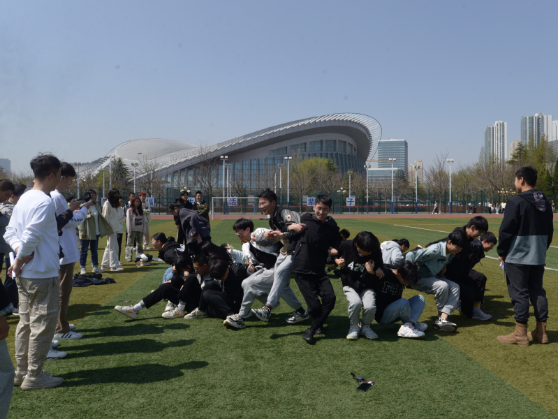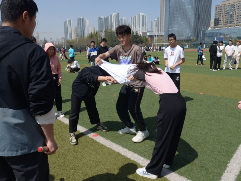 416日上午,tyc41183太阳成集团2022级在田径场举办凝心聚力,激扬青春春季趣味运动会,本次趣味运动会秉承着健康活泼、阳光运动、团结协作的活动理念,以班级为单位组队参赛,旨在缓解学生的学习压力,增强学生集体意识和团结协作能力,设有坐地起身、交换穿衣、拔河、套圈等项目。