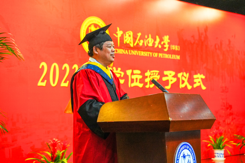 仪式最后,孙道峰院长讲话,他代表学院向完成学业的毕业生表示祝贺,向160多位远道而来分享这份毕业喜悦的家长朋友们表示最热烈的欢迎,向培养学生成长成才的全体教职工表示感谢。孙道峰指出,2023届毕业生与学院同风雨、共成长,充分发扬材料人不畏艰难、追求卓越的优秀品质,各类荣誉不胜枚举,展现了材料学子良好的精神风貌!孙道峰对毕业生寄予三点希望:一是在责任担当中坚守情怀。要勇于担当起自己所应担当的那份责任,在面对急难险重的任务时,不逃避、不推诿,挺身而出,以青春之力,主动担当、善于作为。二是在奋进拼搏中追求卓越。要做好每一件小事,完成每一项任务、履行每一项职责,在服务国家、贡献社会的奋斗中彰显“大国之材”,在推动高质量发展上主动作为,展现石大材料人的风度、风貌、风采。三是在豁达乐观中面对生活。要永远保持积极心态,勇于面对困难,及时调整自己,积聚能量再出发。