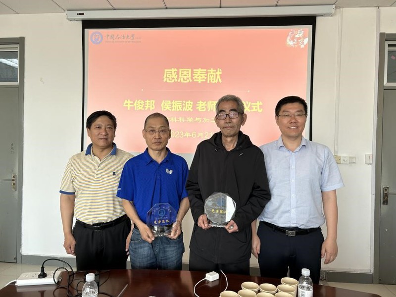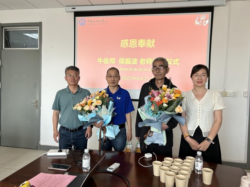 6月21日,材料科学与加工系在工科E512隆重为牛俊邦和侯振波两位老教师举行“感恩奉献”退休欢送会,系全体教师参加,学院党委书记门小刚、党委副书记孙启龙受邀参加。
