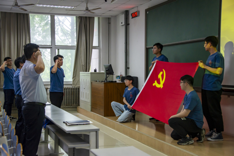 “我志愿加入中国共产党,拥护党的纲领,遵守党的章程……”在仪式的最后环节,毕业生党员代表程龙领誓,带领全体党员重温入党誓词,全体成员高举右手,伴随雄壮的宣誓声,出征仪式宣布结束。