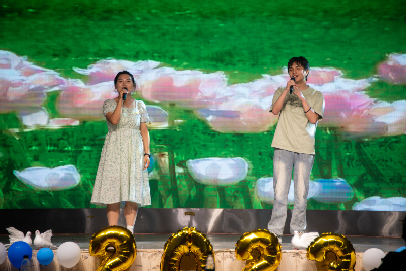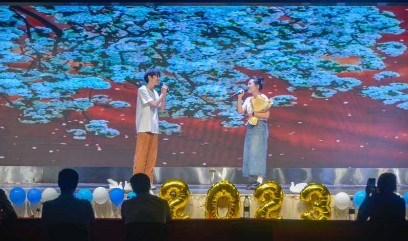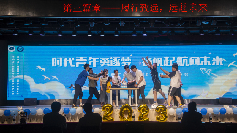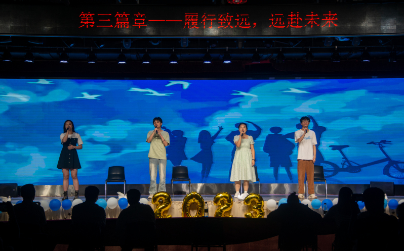 晚会的最终环节,由学校学生心理健康中心辛晓雯、毕业班班主任甄玉花、2019级本科生辅导员褚奇以及2023届毕业生代表高赟共同切开毕业蛋糕,祝福毕业生此去前程似锦,鹏程万里。伴随着歌曲《起风了》的悠扬婉转的旋律,毕业生共同观看了《tyc41183太阳成集团2023届毕业生回忆录》视频,在细细回忆着大学四年真挚的师生情谊中晚会落下帷幕。