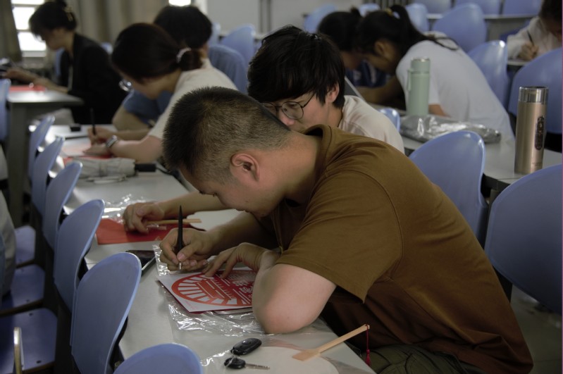 学生党员制作爱国主题剪纸