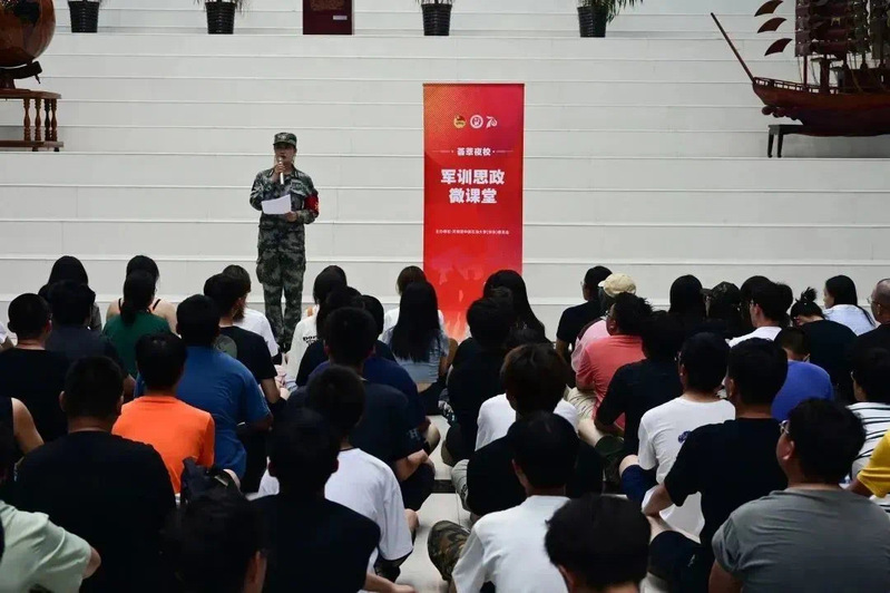 在各方的共同努力下,学院军训营先后完成了军事训练、定向越野、夜间拉练、歌咏比赛、队列比赛、方队会操等任务和比赛。同时,学院在军训期间始终坚持将党史、思政教育贯穿全过程,通过组织“荟萃夜校—军训思政微课堂”等活动让学生在爱国主义思想的熏陶中,厚植家国情怀,坚定报国信念。