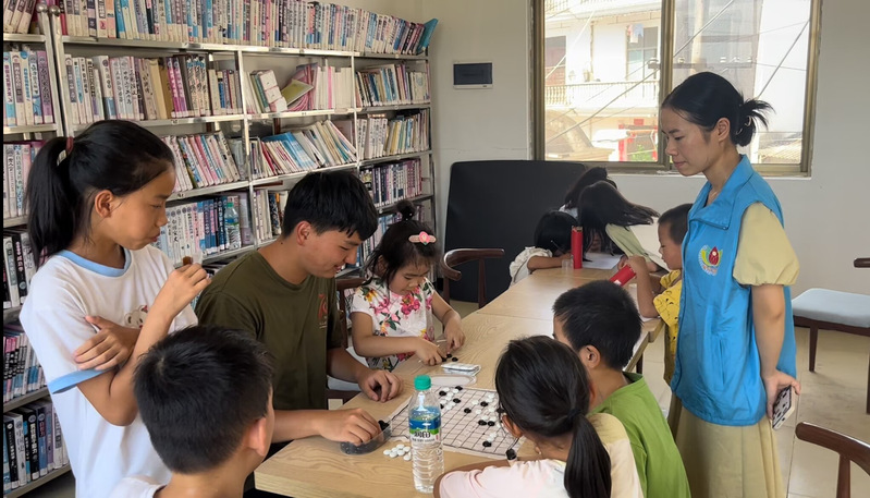 真致灼建实践队王思棋在童心港湾与孩子们下五子棋