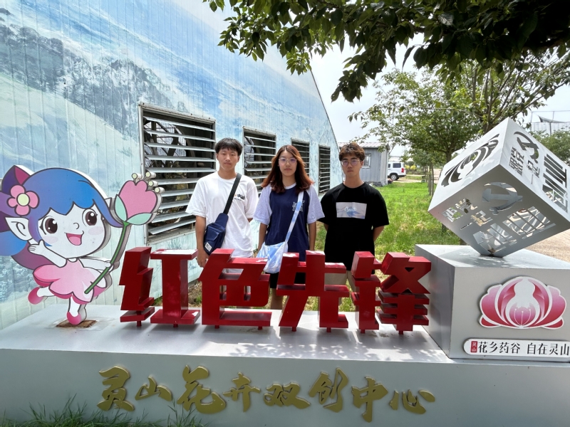 实践队队员实地调研灵山花卉双创中心 贺俊杰摄