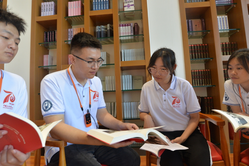指导老师李寿玺与实践队员在学习书院交流学习《梁家河》 东野鑫升摄影
