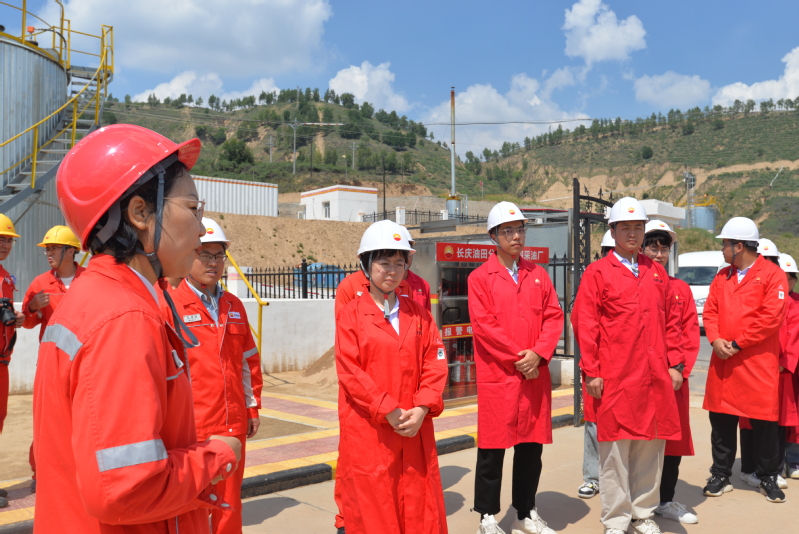 在长庆油田第四采油厂艾家湾作业区数字化生产指挥中心,实践队员们看着指挥中心大屏上一个个跳动的数字,详细了解了长庆油田推进“大油田管理,大规模建设”的科学发展思路,亲身感受建设“绿色、智能、人文”现代化采油大厂的愿景。在采油现场,实践队员们目睹了游梁式抽油机的工作过程,随着“磕头机的一上一下”,蕴藏在黄土高原底部的宝藏喷涌而出,造就“磨刀石上闹革命的”神话。实践队员在采油现场跟随着油田工人的讲解,结合自己的专业知识认真地学习这堂来者不易的“实践课”。