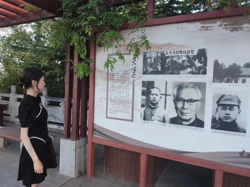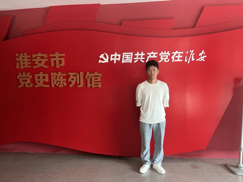 8月6日,实践队员于淮安市党史陈列馆学习淮安党史与淮安人民的革命历程。淮安市党史陈列馆位于淮安市北部清河新区,其以“革命征程——中国共产党在淮安”为主题,介绍了1921至1949年间的革命故事。以各个时期和人物为线索,展区六个部分,向工作人员询问得知,这里陈列着历史图片300余幅及革命战争年代生活用品、战斗武器等物件,再现了中国共产党领导淮安人民不懈奋斗并取得胜利的光辉历程。沿着四方长廊走过,实践队员看到了各种革命时期的武器装备,华中野战军战士用过的步枪、枪号,两淮战役中的九二式步兵炮等。“淮海,宿北,两淮保卫战等各大战役都爆发在这片土地上,这些历史的痕迹,这些史书中歌颂的人物,无时无刻不激励着我踔厉奋发,砥砺前行”,在谈及感受时,实践队员胡志耀这样说到。
