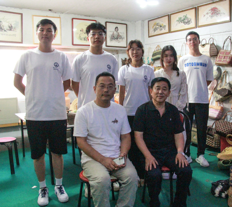 实践队员与草编非遗传承人合影 星火传递实践队摄影