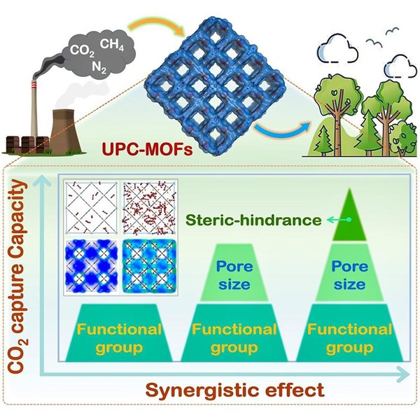 过量的二氧化碳排放导致了严重的全球性环境问题,刺激了二氧化碳吸附剂材料的发展。在众多吸附剂材料中,金属-有机框架(MOFs)因其独特的微孔结构而被认为是最有前途的候选材料之一。为此,团队构建了一系列UPC-XX部分互穿MOFs,通过理论计算研究了通过官能团、孔径和空间位阻的协同效应持续增强二氧化碳捕获性能,并成功的将以上各调控策略和Sc基部分互穿MOF结构进行结合,开发了高效的二氧化碳吸附材料。通过孔隙特征分析、气体分布、等温吸附热和van der Waals/Coulomb相互作用等的理论计算,阐明了官能团、结构尺寸和位阻的协同效应机制。相关研究成果以题为“Enhanced CO2 capture in partially interpenetrated MOFs: Synergistic effects from functional group, pore size, and steric-hindrance”发表在Journal of Colloid and Interface Science (2023, 650, 1361-1370, 中科院一区TOP)。该论文第一作者为21级硕士生刘森,通讯作者为魏淑贤副教授。
