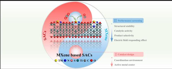 传统的金、银基材料是目前二氧化碳还原中最优异的催化剂,然而高成本和低原子利用率限制了其工业化应用。单原子催化剂具有近100%的金属原子利用率和高催化活性,但电流密度仍低于工业化要求。MXene材料具有优异的导电性、大催化活性基面及比表面积,有望作为单原子催化剂的基底提高催化电流密度。针对以上研究现状,团队以Ti3C2O2作为MXene材料的典型代表,系统地研究了一系列MXene基单原子催化剂。从催化剂的稳定性、催化活性、产物选择性以及电场响应性进行了大规模筛选,确定了MXene基钌单原子催化剂作为优异的催化剂,其在低电位下表现出超高的催化活性,并有效抑制其他竞争反应的发生,性能超越目前报道的大部分材料。该工作为电催化催化剂的理性设计和筛选提供了有效的策略。相关研究成果以题为“MXene-based single atom catalysts for efficient CO2RR towards CO: A novel strategy for high-throughput catalyst design and screening”发表在Chemical Engineering Journal (2023, 461, 141936,中科院一区TOP)。该论文第一作者为20级博士生曹守福,通讯作者为刘思远副教授和鲁效庆教授。
