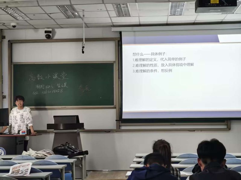 为了切实解决学生学业上遇到的困难,帮助学生掌握有效的学习方法,以积极的心态应对即将到来的高数期中考试。10月23日至27日,学院2023级本科生各班级陆续开展了“高数小课堂”活动,活动邀请到材化2201班邢昊原、材料2201班丛琬蕙、材物2202班潘睿扬、材控2203班生云昊、材料2201班曹谨、本研一体化(材料类)2201班张延雷和高海博担任主讲。