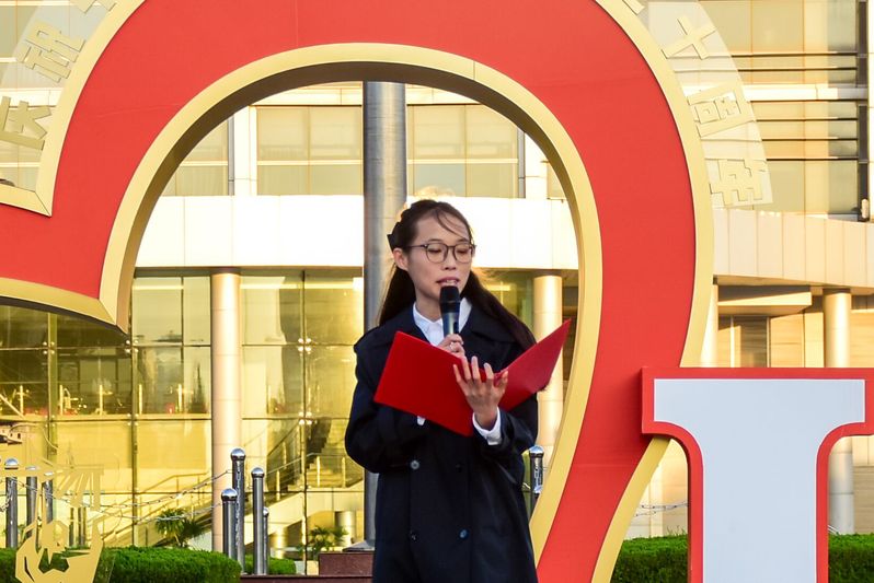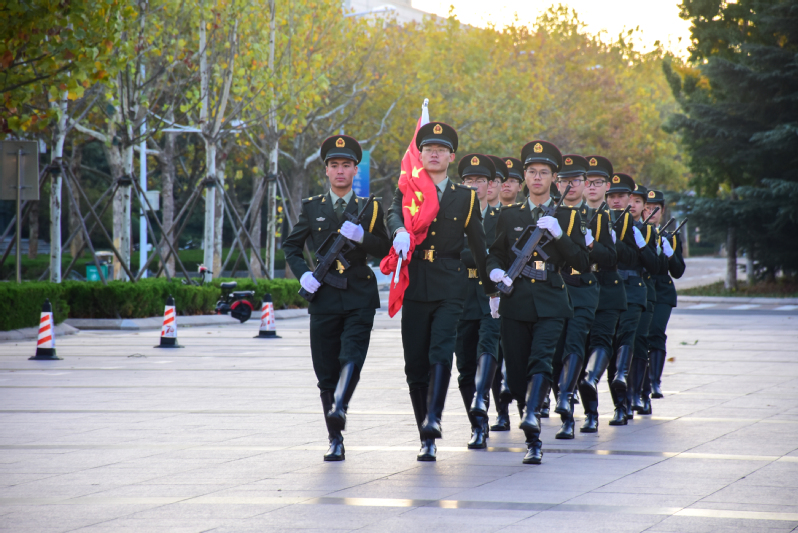 活动伊始,国旗护卫队迈着铿锵有力的步伐入场,全体肃立,升国旗,奏唱国歌。升旗仪式后,学院2020级本科生、校“青春领航宣讲团”成员石茹以“感悟校史故事,践行石大精神”为题进行宣讲。石茹讲述了从黄河之滨到唐岛湾畔的校史故事,为同学们阐释石大精神的形成,鼓励同学们兴文化、扬精神、强特色、继传统,将石大精神发扬传承。石茹表示,“不忘本来才能开辟未来,善于继承才能更好创新,作为石大人,我们应牢记石大精神,铸牢成长成才的‘根’和‘魂’,争做值得尊敬的材料人”。