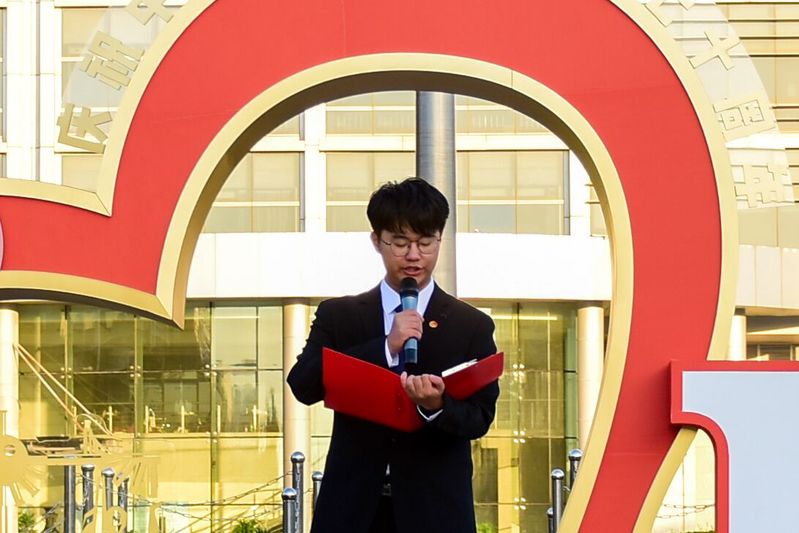 来自材料类2312班的新生团员代表王焕廷发表了题为《心怀赤诚,砥砺奋斗,做担当大任的新时代青年》国旗下演讲,用材料学家师昌绪和“飞天”科学家桂海潮教授等的事迹,激励广大团员青年要以矢志报国的赤子之心,积极投身科学事业;要勇于攻坚克难,为实现民族复兴的伟大中国梦砥砺奋斗。他向团员青年们发出倡议,“让我们认真地上好每一节课,写好每一次作业,做好每一个社会实践与志愿服务活动,认真参加每一场科技竞赛,积极参加体育锻炼,让每一天都过得有意义”。最后,他鼓励广大团员青年要立志“材料报国”,做一位守正出新、追求卓越的材料人。