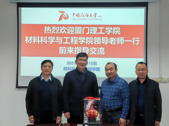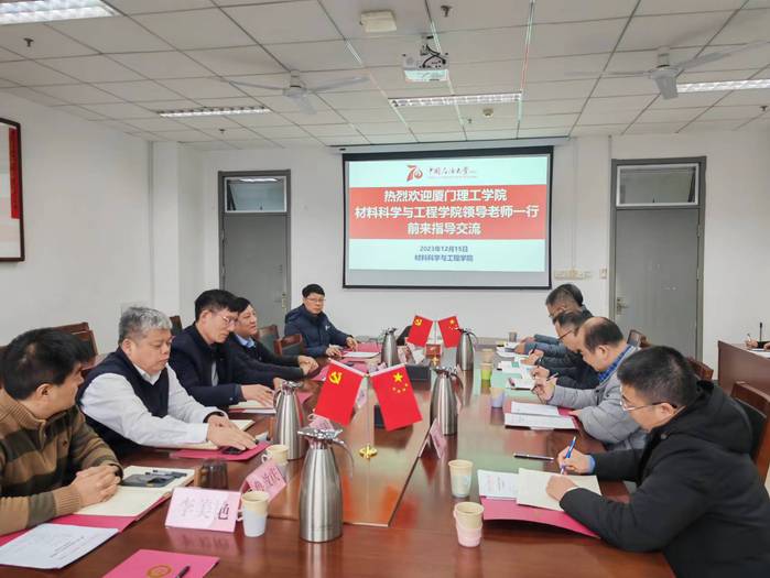 12月15日,厦门理工学院tyc41183太阳成集团院长张厚安,党委书记周志火,科研处副处长谢安,研究生处副处长姜春海,李伟洲教授一行五人来学院调研交流,学院院长吴传德,党委书记门小刚,常务副院长孙道峰,科技处副处长谭树成,副院长鲁效庆,副院长王荣明,材料科学与加工系党支部书记李美艳参加会议,门小刚主持调研交流会。