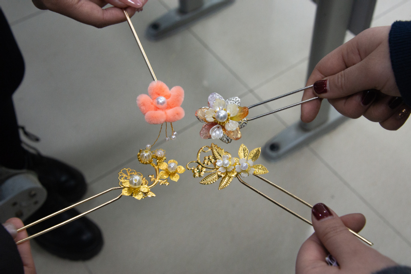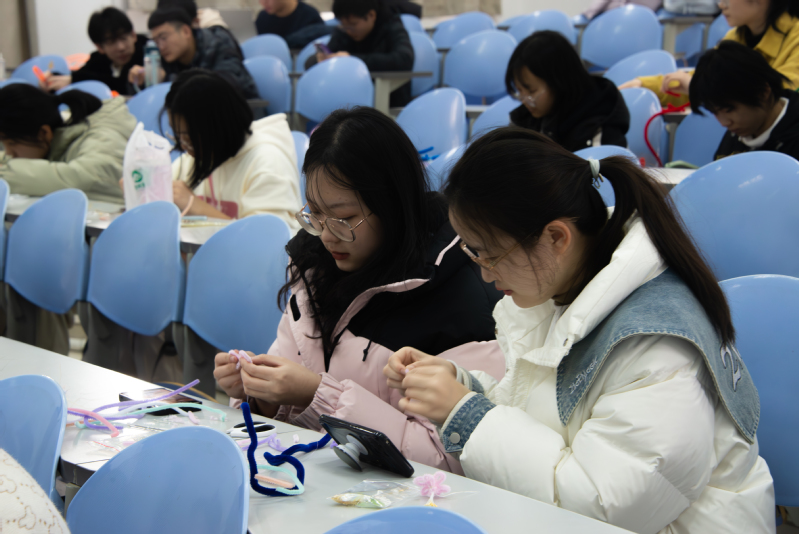 “我很喜欢发簪,它代表着传统美和女性美,是一种跨越时空的审美情结,在发簪的制作过程中,我对它有了更深的认识。”学院2022级本科生任嘉雯说道。3月10日下午,学院学生会联合学校弦歌汉服社于西环101教室举办“簪簪自喜,芳龄满城”思美节主题手工制作活动。活动吸引了60余名学生参与,构思、剪裁、缠绕、组合……学生们充分发挥自己的创造力和想象力,将各种材料与配饰巧妙地搭配一起,过程中学生们互帮互助,交流心得,不多时,造型各异,美轮美奂的发簪在学生们手中“绽放”。本次活动不仅扩大了传统文化的校园影响力,同时也有利于提高女生的动手能力和自信心。
