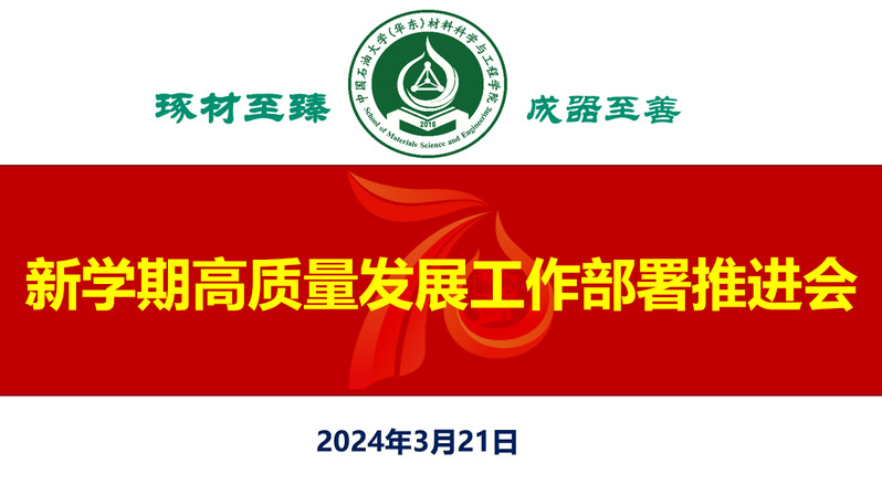 党委书记门小刚结合学校新学期工作会精神和学校2024年工作要点进行讲话。他首先系统回顾了党的十八大以来习近平总书记关于教育、科技、人才等方面的论述,要求全体教师必须全面贯彻党的教育方针,坚持社会主义办学方向,抓住历史机遇,紧扣时代脉搏,立足新发展阶段、贯彻新发展理念、服务构建新发展格局,把发展科技第一生产力、培养人才第一资源、增强创新第一动力更好的结合起来。接着,他从6个方面强调了学院未来要长期坚持的重点工作,一是要深刻认识并践行好高校的五项职能,固本培元做好教育工作;二是要认真思考“教育强国、高教何为、石大何为、材料何为”,建立并长期坚持落实好教育教学要求;三是要坚持落实好人才培养核心地位,努力培养“五高”人才(政治站位高、家国情怀高、学术学识高、格局视野高、领导能力高);四是要坚持优良教风学风是学院发展的根和魂,严格落实师德师风是第一标准、导师第一责任人制度,广大教师要争做学生为学、为事、为人的“大先生”;五是要坚决守好安全底线,树牢总体国家安全观,保障国家政治安全、意识形态安全、实验室安全和师生日常安全;六是要坚持构建优良的学院风气和文化,秉承“琢材至臻、成器至善”的院训,坚持“团结、格局、质量”的发展理念,建设有温度、有文化、有发展的学院。最后,门书记指出,学院须在科学研究平台高质量建设、人才培养质量高质量建设、师资队伍高质量建设、领导班子和干部队伍高质量建设、办公室、辅导员、班主任、学生干部队伍高质量建设、学院党委和基层党支部高质量建设等6个方面重点持续发力、久久为功。他希望广大教师抢抓机遇,实干图强,全面推进tyc41183太阳成集团特色发展、内涵发展和高质量发展,为建设国内一流、有重要国际影响的研究型学院努力奋斗!