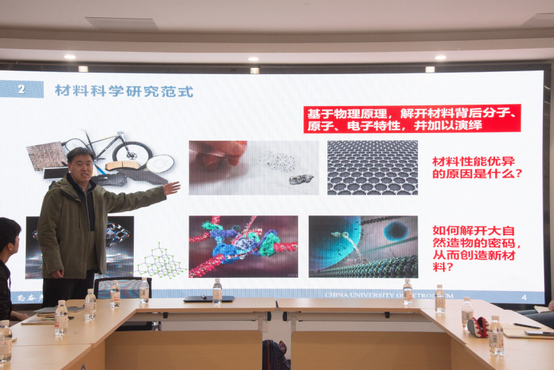 活动伊始,参与学生依次进行自我介绍,相互增进了解,为活动的开展营造了一个轻松愉悦的氛围。随后,师生围绕专业认知、生活学习、未来发展等话题展开了热烈的讨论。针对学生们对专业的疑惑,李振从“对本科专业的几点认识”“材料科学研究范式”“何为材料物理”“我校材料物理专业”“材料物理前景”几个角度展开介绍,帮助学生对材料物理专业有整体了解。他指出,材料物理专业课程覆盖理论、实验、计算、数据4大科学研究范式,夯实知识体系,培养物理思维尤为重要。谈到人工智能和传统材料研究的融合,李振表示,“拥抱人工智能,变革研究方法,才能掌握材料研发的未来。”面对学生对“材料物理”和“物理”之间关系的疑惑,王志坤解释道,“物理是工科的基石,材料物理只是将物理的研究方法与思维模式用在材料研究上,是一门以材料科学为基础,融合了数学、物理、化学、计算机等多方面知识的交叉学科。”最后,两位老师对在场学生提出建议,希望同学们能够以清醒的自我认知、坚实的专业基础以及敢想敢拼的精神来顺应瞬息万变的时代发展,拥抱充满无限可能的未来。