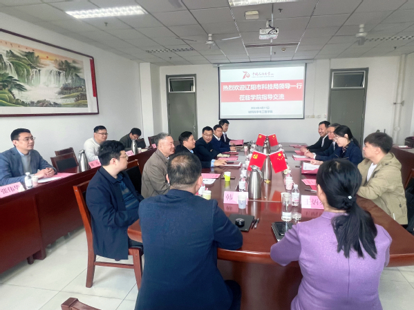 4月11日,辽宁省辽阳市科技局局长史艳丽、副局长杨海、规划科科长曾诚、辽宁科创重型内燃机曲轴有限公司总经理臧伟等一行五人来访学院并座谈。学院党委书记门小刚、科技处副处长于冰及学院班子成员和专家代表与来宾座谈,双方就进一步加强科技合作、科技成果转化等方面达成合作共识。