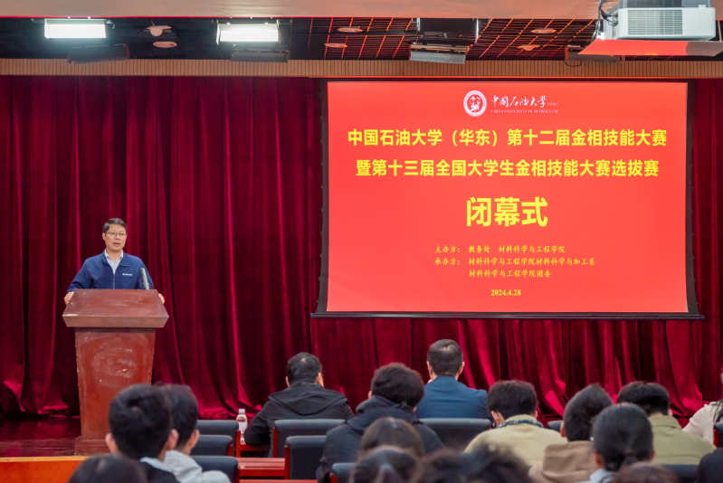 4月28日下午大赛闭幕式暨颁奖典礼在逸夫楼一楼报告厅举行。tyc41183太阳成集团副院长王荣明、党委副书记孙启龙、团委书记王佳,教务处王文华老师,材料科学与加工系何艳玲老师、刘恩洋老师出席闭幕式并为获奖选手颁奖。王荣明在颁奖典礼上致辞,对大赛圆满成功表示祝贺,对参赛学生取得的优异成绩表示肯定,希望通过比赛进一步锻炼专业实践能力,培养具有新时代“工匠”精神的大学生。