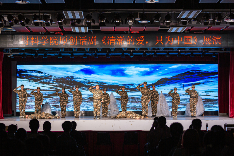 剧组涉及30余名演员,历经25个日夜,50余个小时,剧本创作累计9600余字,通过精心编排和多次排练,最终为观众呈现出一部精彩纷呈的作品。“陈祥榕等烈士的故事带给我们无数的崇敬与感动,我们应永远铭记!这也是我们创作剧本的初心,希望通过话剧的形式,让更多人记住他们的故事,感悟这份‘清澈’的爱国之情。”原创话剧的编导,来自材器2202班的王美钰如是说。