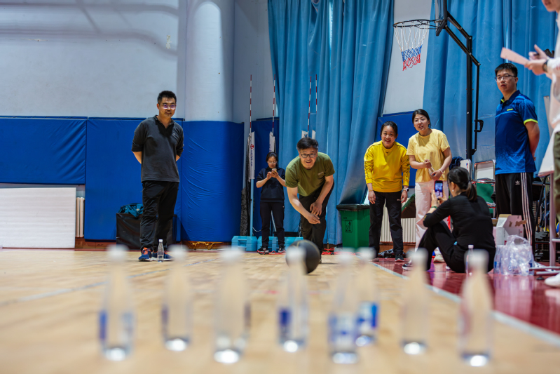 本次运动会共设置了8字跳绳、定点投篮、众星捧月、十米滚球、沙包掷准五个比赛项目,来自学院机关、材料科学与加工系、材料物理系、材料化学系、新能源材料系等五个工会小组的60余名教职工了参加了本次比赛。比赛开始前,教职工们纷纷提前到场进行热身运动,本次趣味运动会就此拉开帷幕。比赛现场,五个参赛队伍的教职工们相互邀请,依次错时、轮流进行各项目比赛。在“十米滚球”项目中,选手需要用篮球击倒十米之外摆成三角形的十个障碍物,教职工们轮番上阵,并在“瞄准、抛球、击倒”后收获掌声与喝彩;8字跳绳和众星捧月项目,教职工们经过赛前不断磨合练习,在比赛中默契配合,行动一致,展现出团结、协作的团队精神。在欢乐中运动、在趣味中竞争,赛场上欢笑连连、掌声不断,教职工们在轻松愉快的氛围中尽享运动的乐趣。经过两个小时的比拼,新能源材料系斩获本次趣味运动会冠军,学院机关、材料科学与加工系并列第二名,材料物理系、材料化学系并列第三名,趣味运动会在欢声笑语中结束。