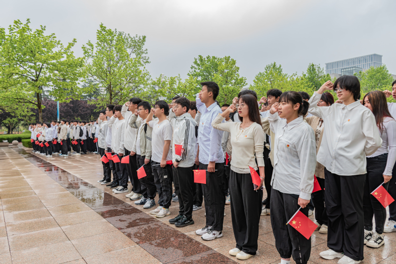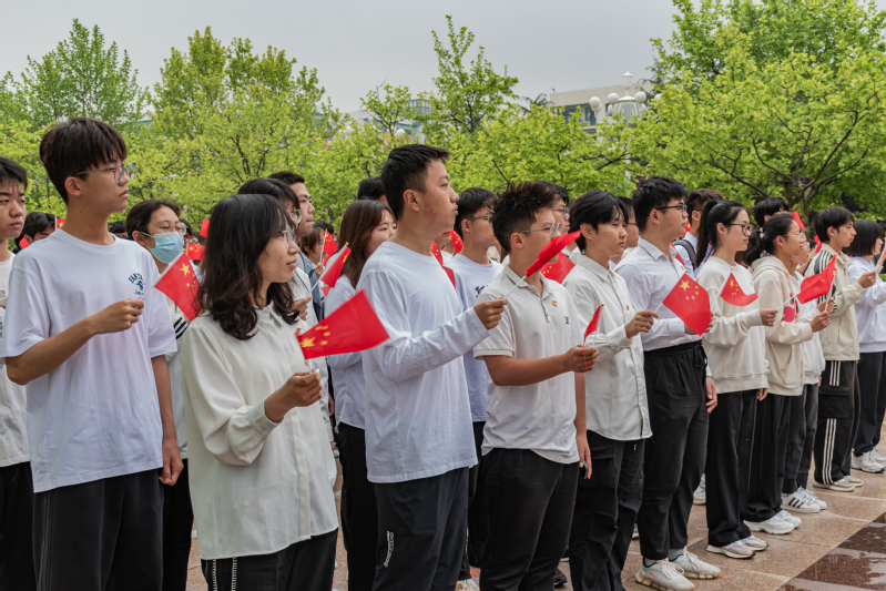 在领誓人张津川的带领下,全体学生重温入团誓词,铿锵有力的誓词回荡在现场每个人心中。仪式最后,伴随着激昂磅礴的旋律,全体学生挥动国旗,齐声高唱《光荣啊,中国共青团》,在歌声中坚定信念,唱响青春。